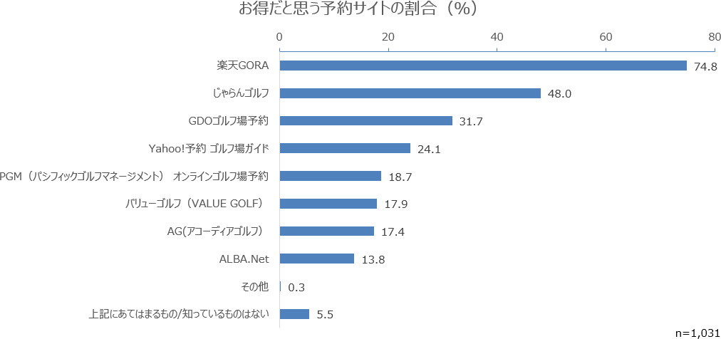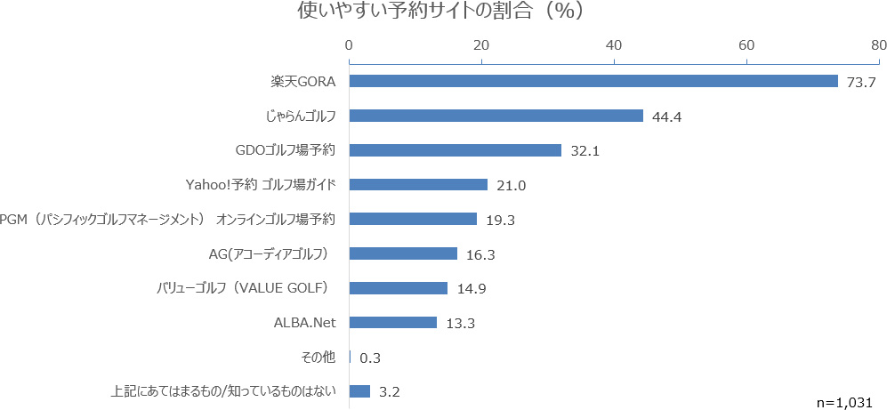 調査対象 | 1年以内にゴルフ場予約サイトを利用したことがある18~60代の男女1,031名 |
