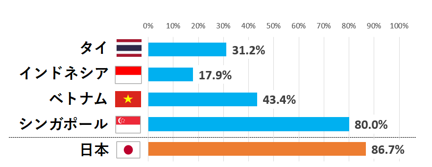 【図表1】 ASEAN主要国および日本の通常型定量調査におけるオンライン調査売上の割合