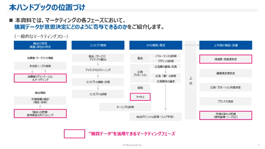 ハンドブック内では購買データの活用方法を詳しく説明しております。本ページのダウンロードフォームよりダウンロードいただき、ぜひ詳しくご覧ください。