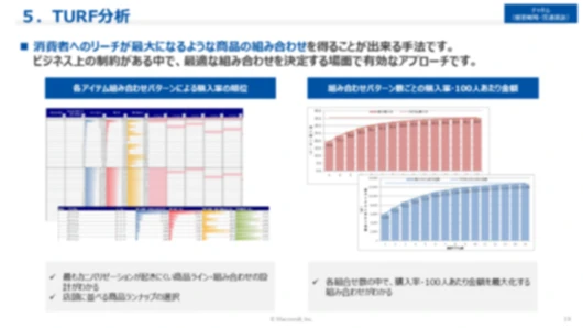 既存商品のポジショニングを把握したい。実際の購入情報をもとに消費者セグメンテーションしたい。併買される商品を把握して棚割り提案に活かしたい・・・。