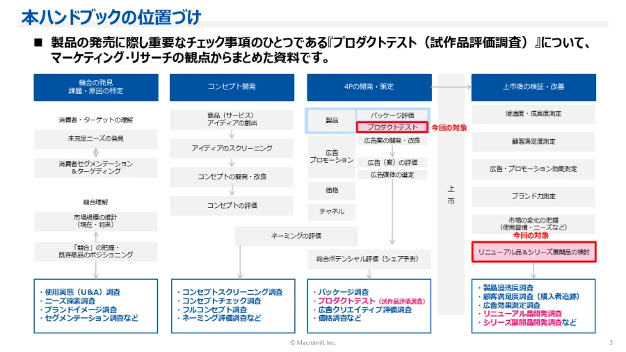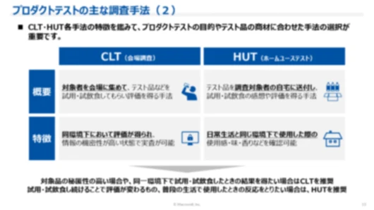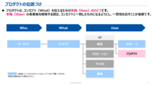 製品とコンセプトの関係や、購買プロセスにおける製品の位置づけを解説します。 - プロダクトテストの着眼点