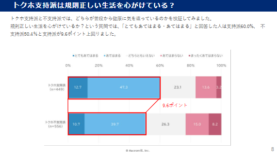 トクホ支持派、不支持派の意識や行動などの傾向が、更に多くの人に商品を手に取ってもらうためのヒントとなれば幸いです。