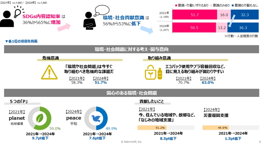 1.SDGs認知は拡大するも、環境・社会貢献意識は低下