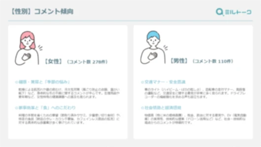 本レポートでは、これらのコメントを性別・年代別に深掘りしています。