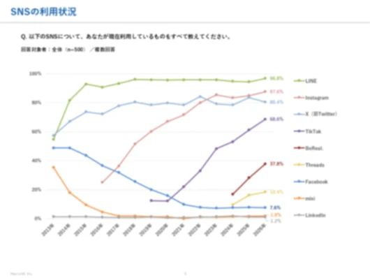 - SNSは「ショート動画」と「リアル」が支持。人気急増は「TikTok」利用率68.6%(6年で5.6倍)と、「BeReal.」利用率37.8%(2年で2倍)